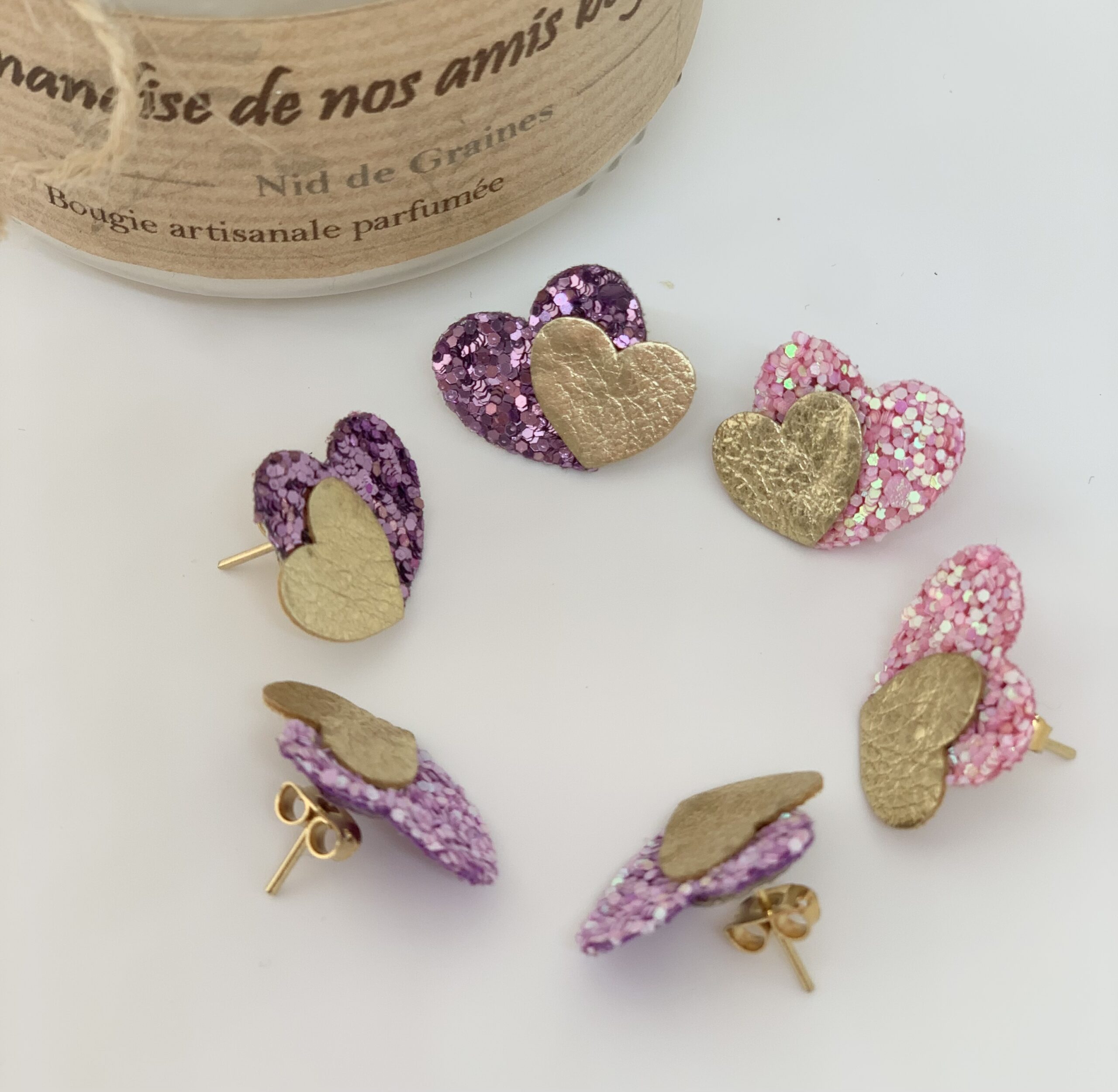 Soyez le premier à laisser votre avis sur “Boucles AMANDA, coeurs superposés chunky paillettes & cuir”