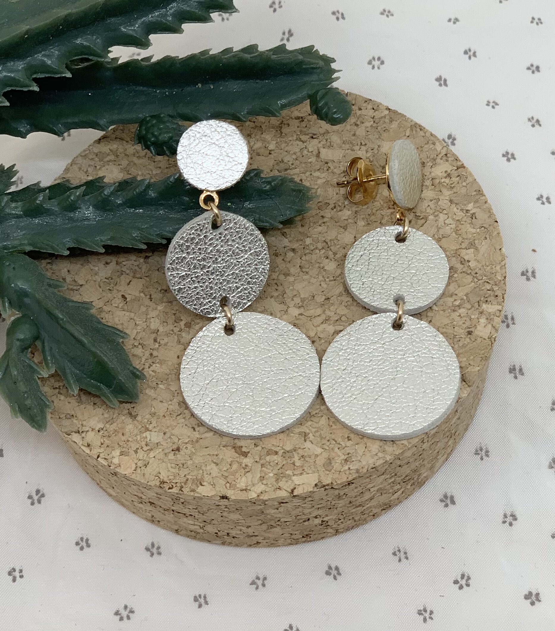 Boucles PAULINE, 3 ronds de cuir brillant