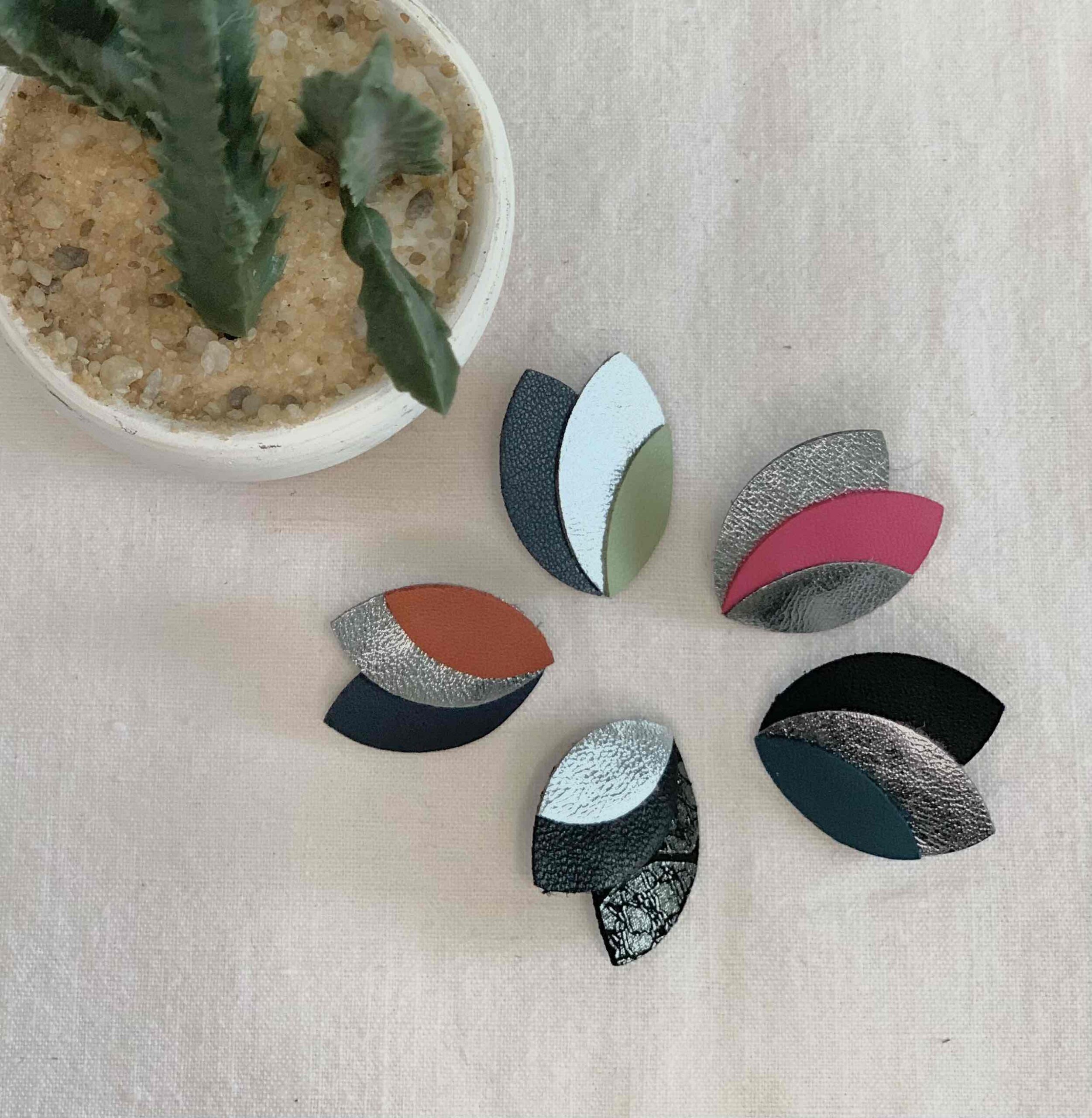 Les feuilles en cuir ont été découpées à la main dans mon atelier. Chaque pin’s est unique !